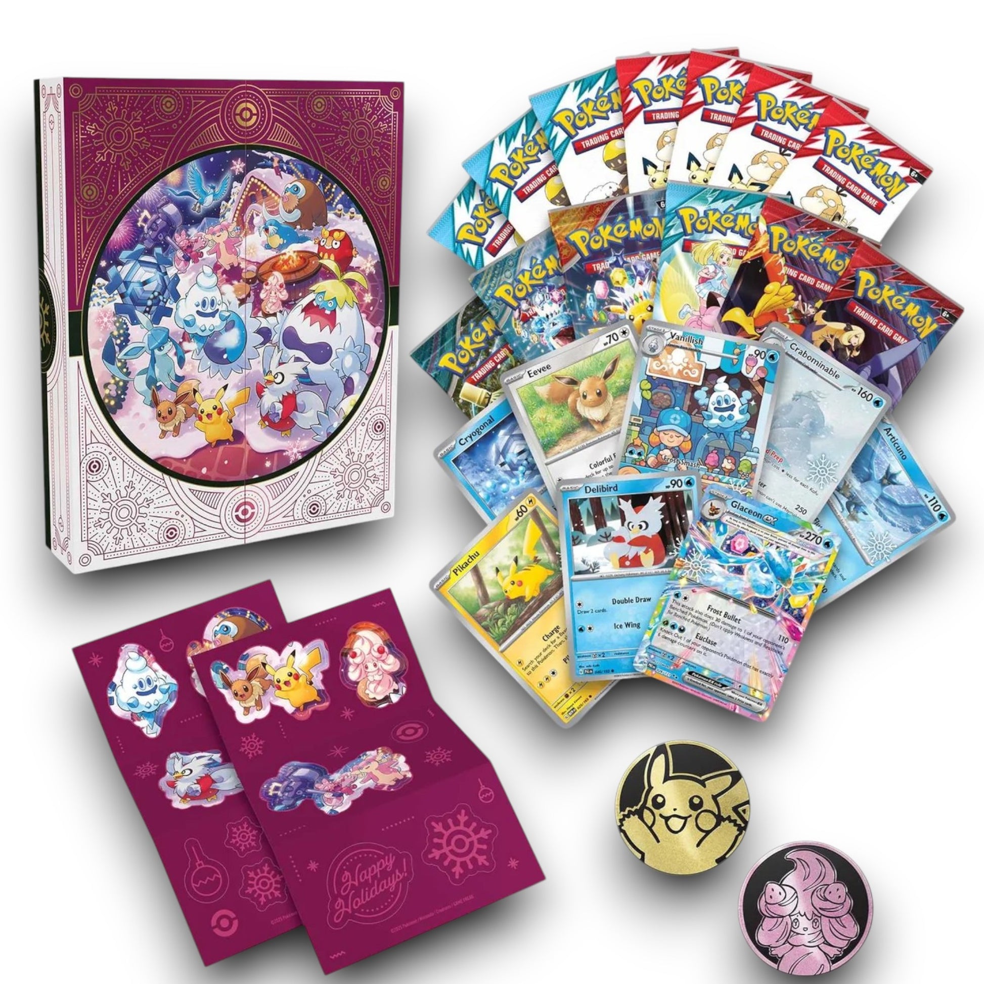 25 Days of Pokémon TCG Surprises! Celebrate the season with 25 days of surprises in the Pokémon TCG: Holiday Calendar! From special foil cards to booster packs and more, there’s a different Pokémon goodie to open every day.