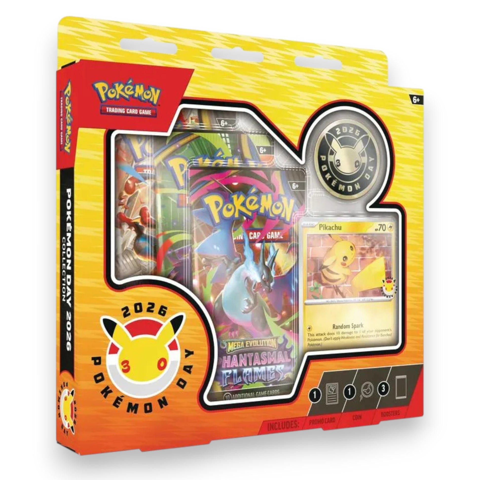 Every year on February 27, Pokémon fans around the world celebrate Pokémon Day to commemorate the release of the very first Pokémon video games in Japan. Pokémon Day 2026 is an extra-special occasion-it's Pokémon's 30th anniversary, and you're invited to the party! Celebrate with a specially stamped foil promo card featuring Pikachu and a metallic coin featuring the 30th anniversary logo, plus three booster packs from different Pokémon TCG expansions.